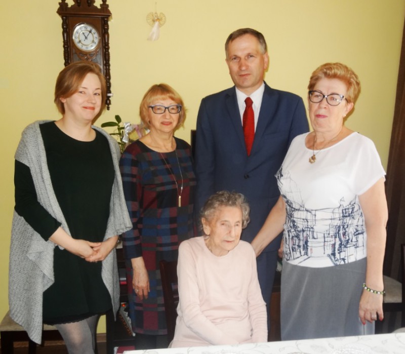 W sobotę 09.12.2017 roku Jubileusz 103 urodzin obchodziła Pani Maria Fenska. Z tej okazji dnia 08.12.2017 życzenia Jubilatce złożył osobiście Wójt Gminy Kaliska Pan Sławomir Janicki wraz z Kierownikiem Gminnego Ośrodka Pomocy Społecznej w Kaliskach Panią Moniką Szmaglińską. Mimo dostojnego wieku Pani Maria jako najstarsza Jubilatka naszej Gminy cieszy się dobrą kondycją oraz pamięcią. Wójt składając w imieniu własnym, władz samorządowych i mieszkańców Gminy gratulacje Pani Marii wręczył kwiaty i upominek oraz życzył by kolejne lata były dla niej przepełnione zdrowiem i radością. W miłej atmosferze Pani Maria opowiadała o swojej rodzinie oraz siostrze, która również doczekała się godziwego wieku. Jeszcze raz życzymy solenizantce Wszystkiego Najlepszego !