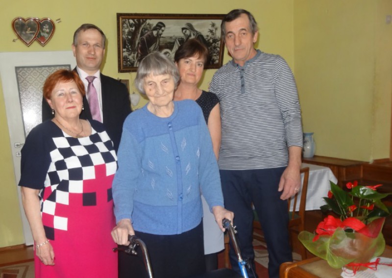 Z tej okazji Szanownej Jubilatce życzenia złożył osobiście Wójt Gminy Kaliska Sławomir Janicki wraz z pracownikiem GOPS Panią Teresą Jagiełło.