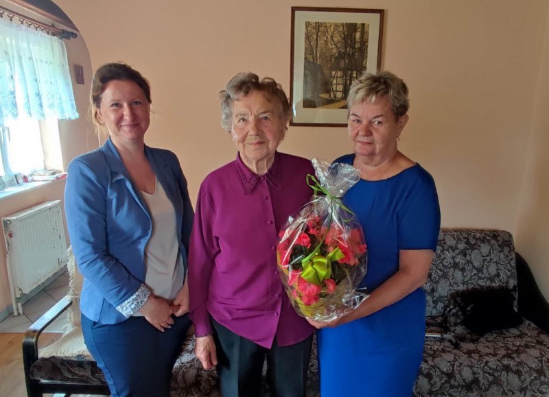 Dnia 26 maja 2023 r. Pani Elżbieta Nieckarz obchodziła 95 urodziny. Z tej okazji Szanowną Jubilatkę odwiedził Wójt Gminy Kaliska Sławomir Janicki wraz z Kierownikiem Gminnego Ośrodka Pomocy Społecznej w Kaliskach Sylwią Drewczyńską.
