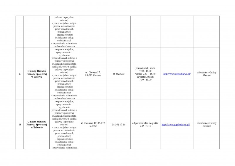 - Skórcz – punkt prowadzony przez Stowarzyszenie OVUM z siedzibą w Gdyni, ul. Traugutta 2, 81-388 Gdynia. Nieodpłatne poradnictwo obywatelskie będzie udzielane przez adwokata. Kontakt tel. 58 350 15 15 (w godzinach od 12.00 do 20.00), www.ovum.org.pl