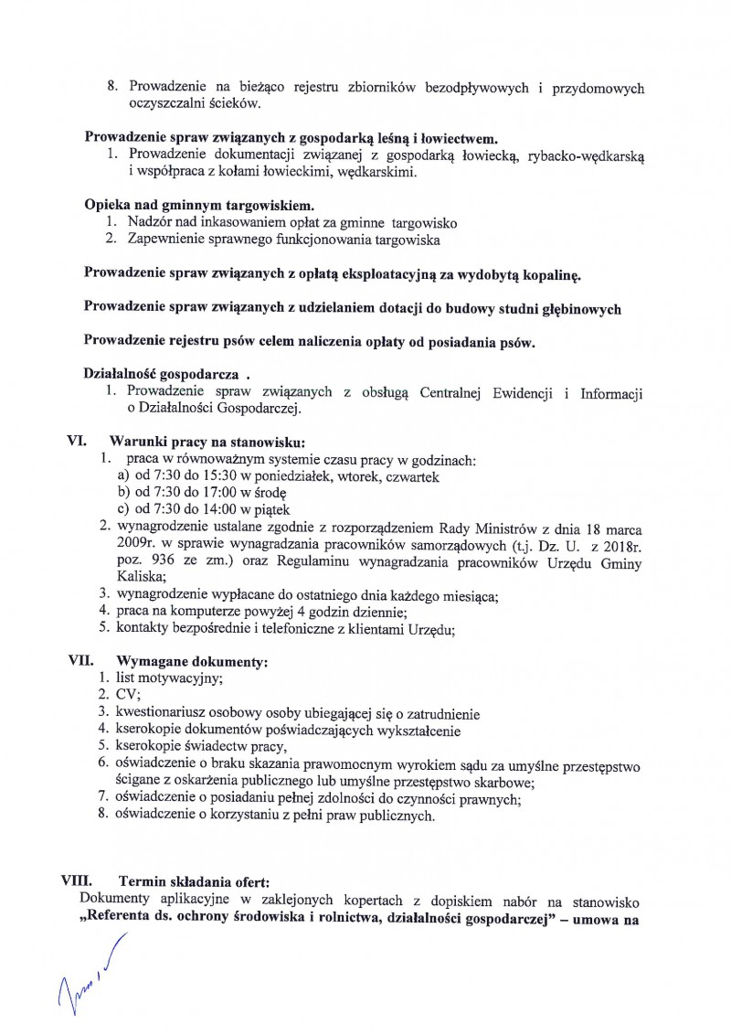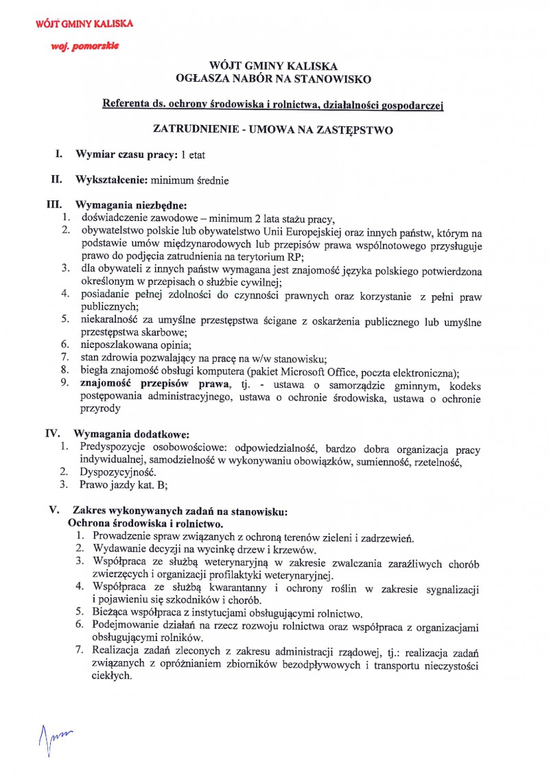 Nabór na stanowisko Referenta. ds. ochrony środowiska i rolnictwa, działalności gospodarczej