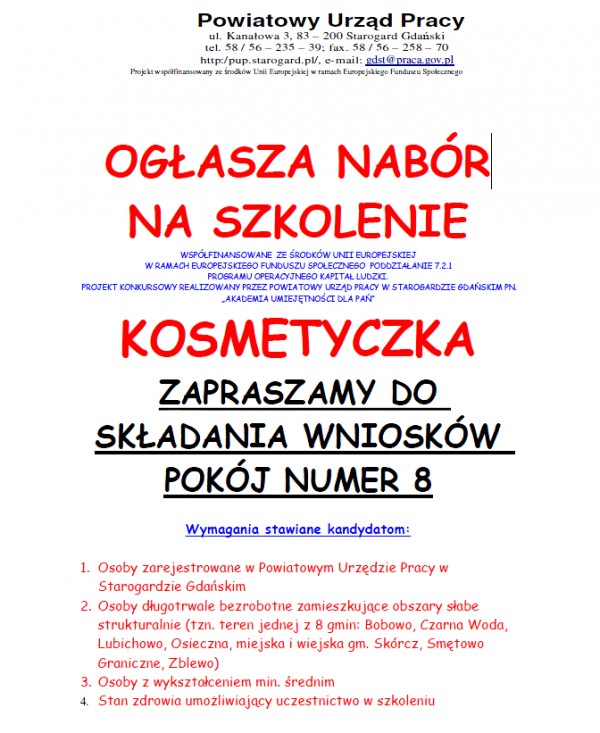 Nabór na szkolenie współfinansowane ze środków UE - KOSMETYCZKA