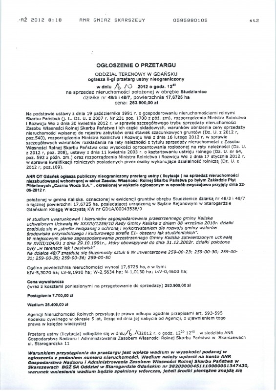 Wójt Gminy Kaliska ogłasza przetargi na zbycie nieruchomości gruntowych
