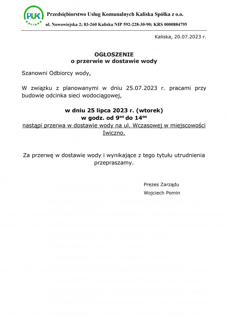 Budowa sieci kanalizacji sanitarnej, rozbudowa i przebudowa sieci wodociągowej dla miejscowości Cieciorka, Dąbrowa, Iwiczno wraz z rozbudową oczyszczalni ścieków w Kaliskach
