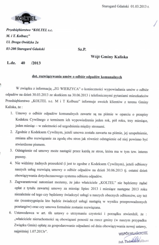 Rozwiązanie umów na odbiór odpadów komunalnych