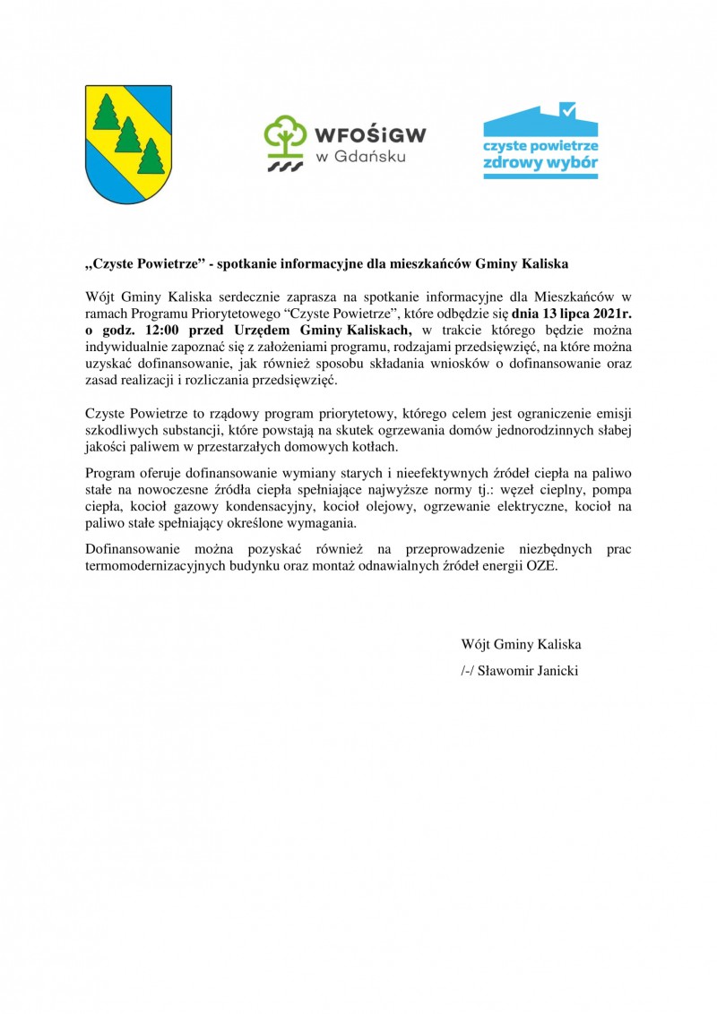 Spotkanie informacyjne dla mieszkańców Gminy Kaliska