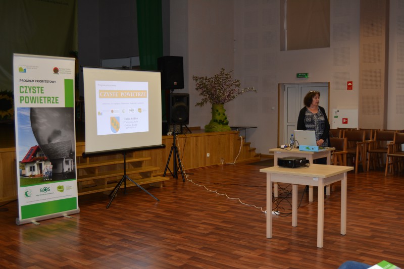 W dniu 27.09.2018 r. o godz. 16.00 w Gminnym Ośrodku Kultury w Kaliskach odbyło się spotkanie z przedstawicielami Wojewódzkiego Funduszu Ochrony Środowiska i Gospodarki Wodnej w Gdańsku w sprawie prezentacji nowego ogólnokrajowego programu „Czyste Powietrze”.