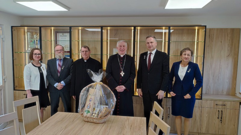 W czwartek 24 marca 2022 r. Urząd Gminy w Kaliskach odwiedził Biskup Diecezji Pelplińskiej ks. dr Ryszard Kasyna. Biskupowi towarzyszył Ksiądz Józef Słupski Proboszcz Parafii Matki Bożej Nieustającej Pomocy Kaliskach. Podczas wizyty Wójt Gminy pokrótce zrelacjonował bieżące działania samorządu, prowadzone inwestycje i inne zadania realizowane dla mieszkańców. Ksiądz Biskup docenił pracę samorządu i jego starania podejmowane na rzecz mieszkańców, a także wyraził swoje zadowolenie z dotychczasowej współpracy Gminy z Parafią - z Księdzem Proboszczem Józefem Słupskim na czele.