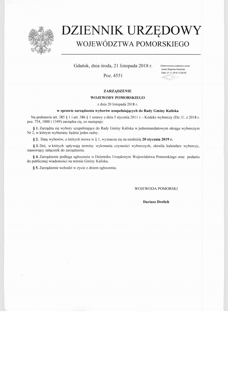 Wybory uzupełniające do Rady Gminy Kaliska 20 styczeń 2019 r.
