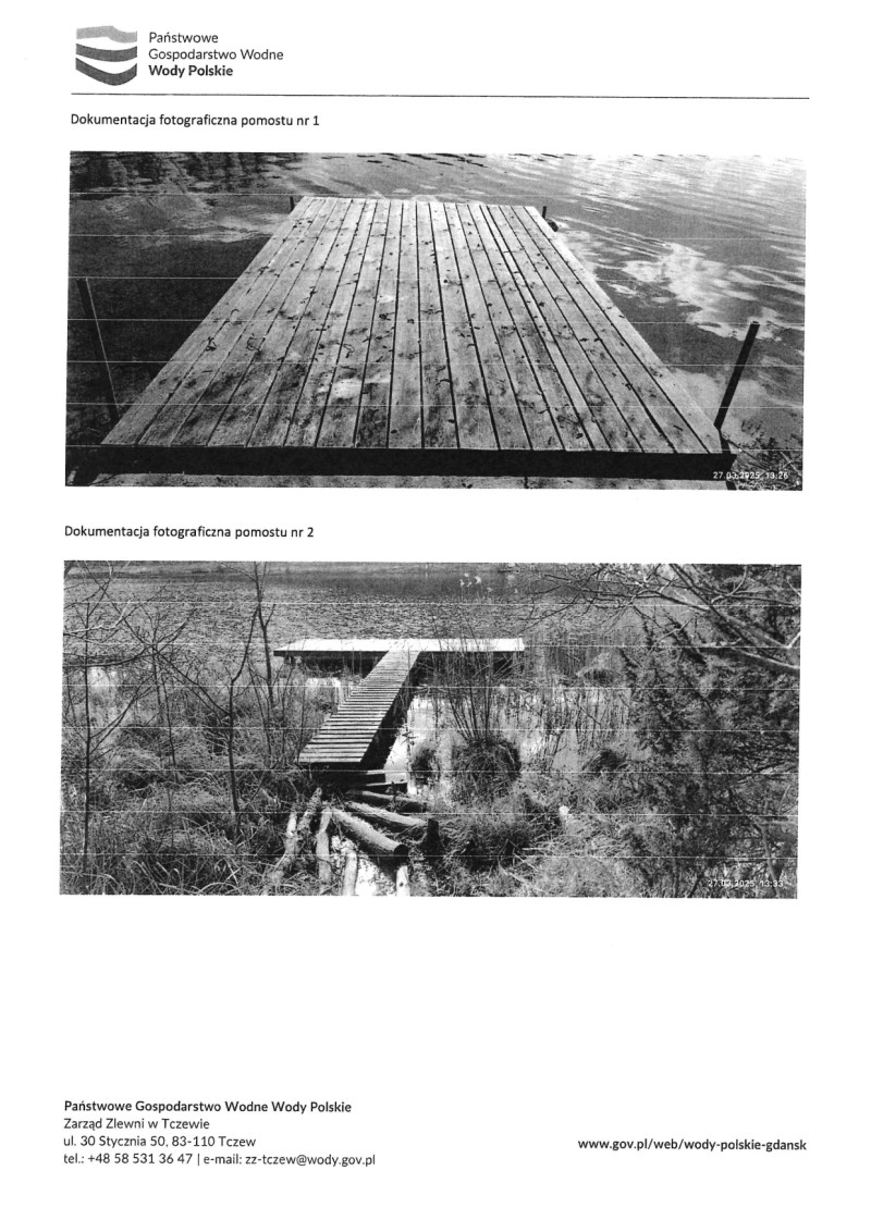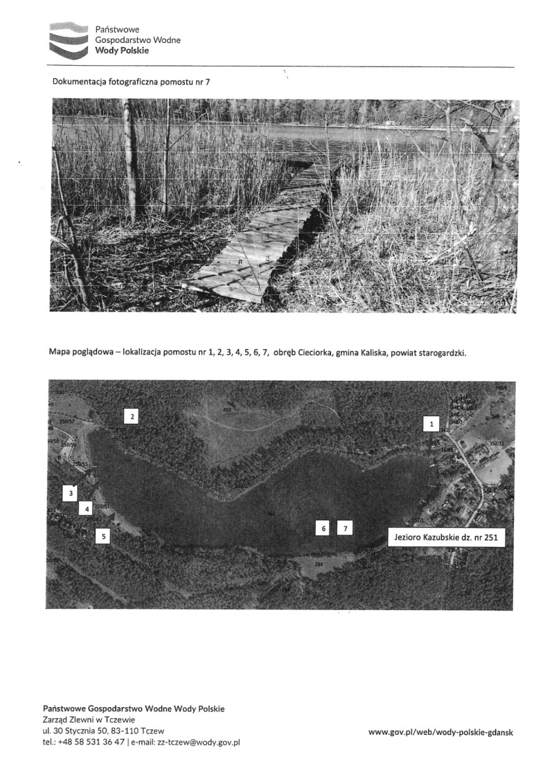 Zawiadomienie w sprawie zlokalizowanych pomostów na jeziorze Kazubskim