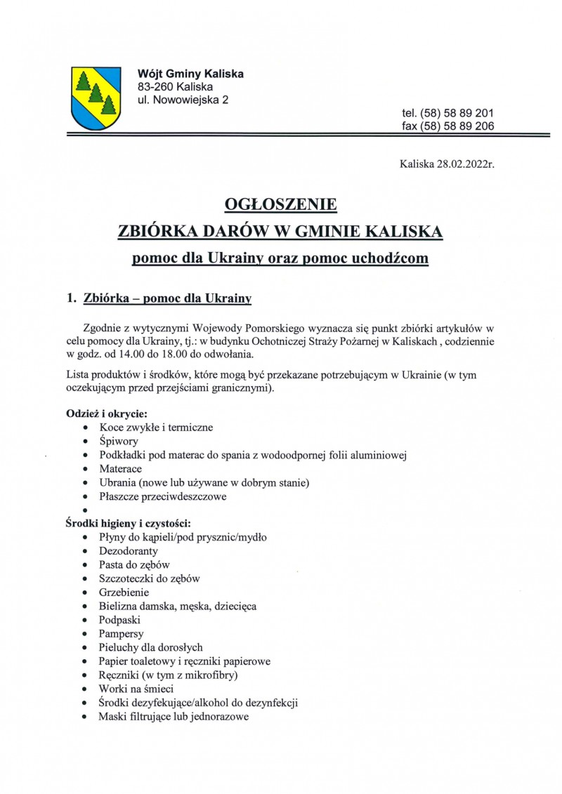ZBIÓRKA DARÓW W GMINIE KALISKA