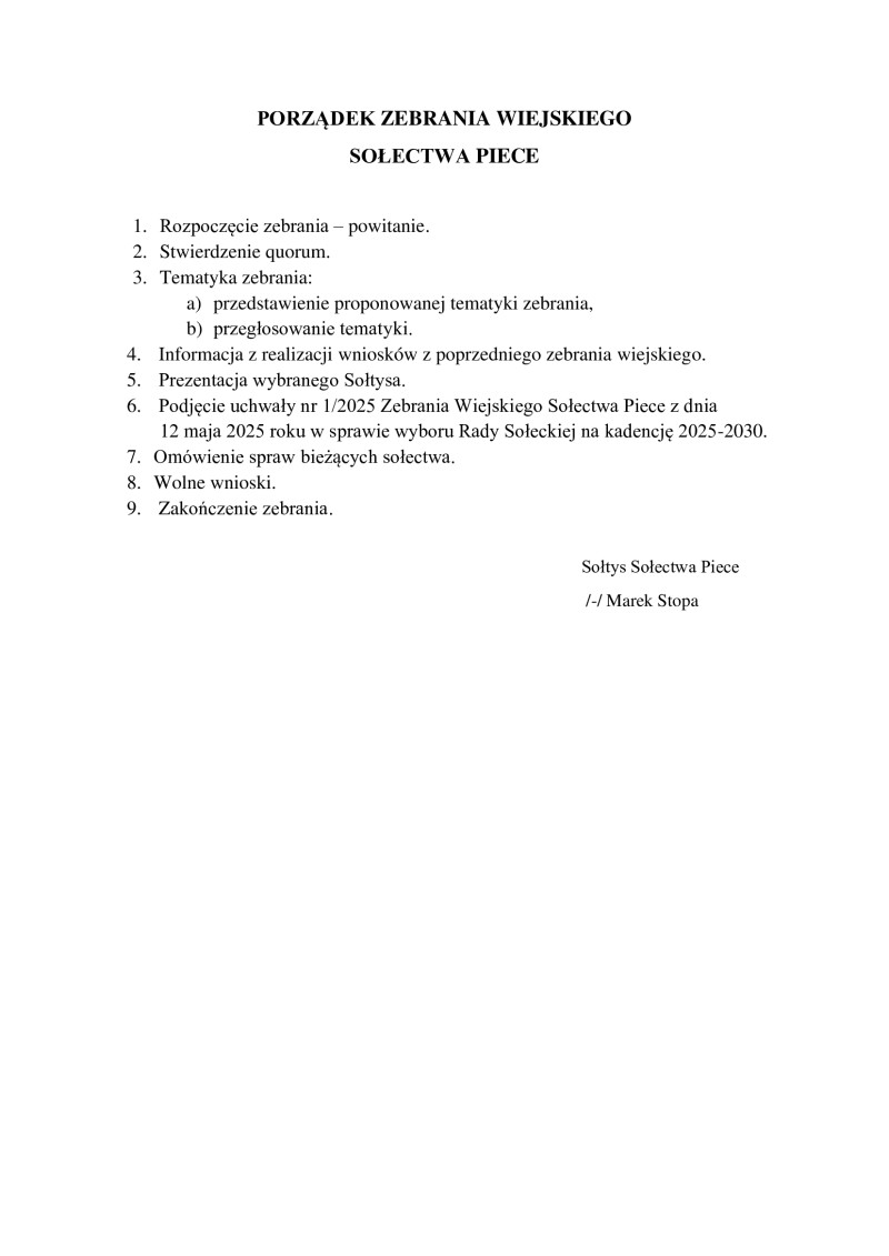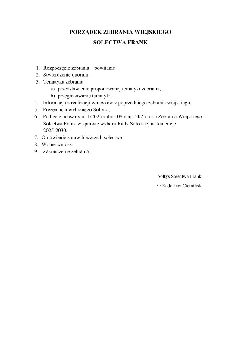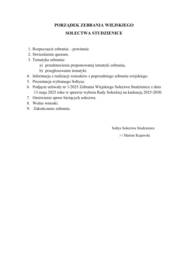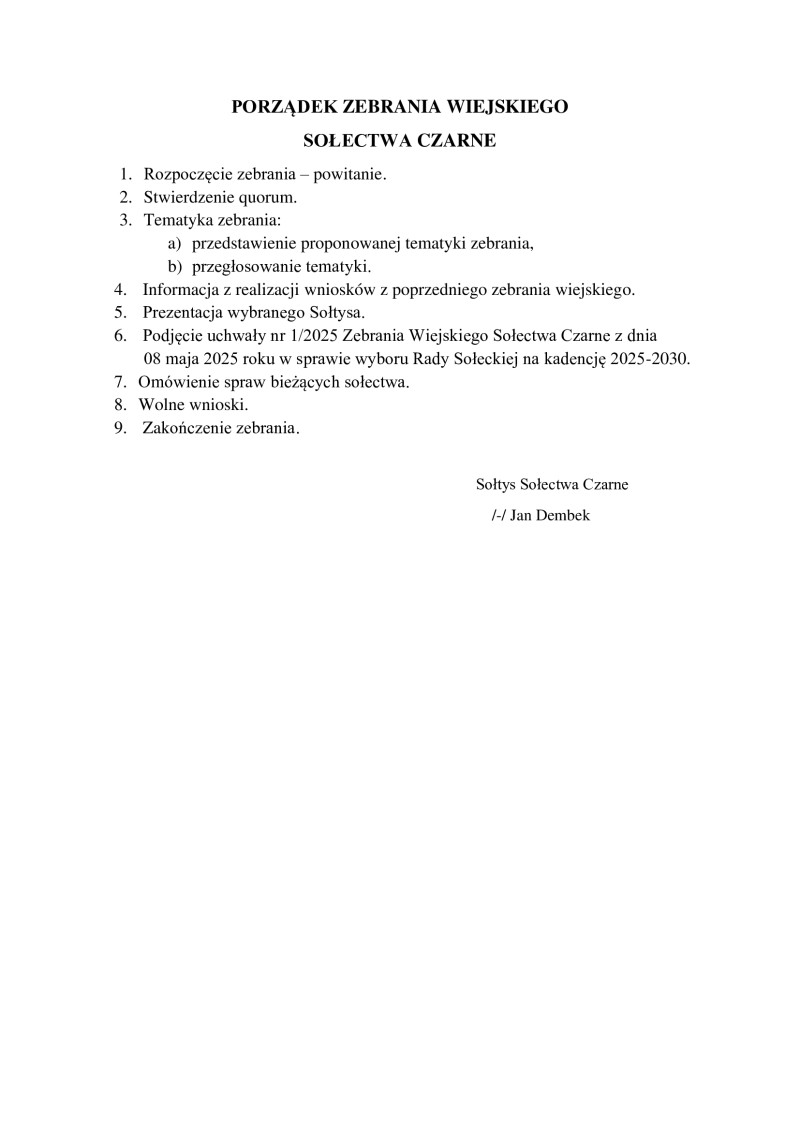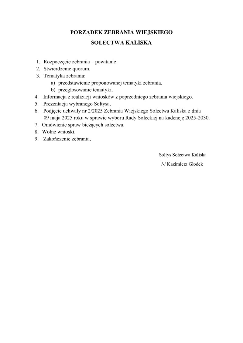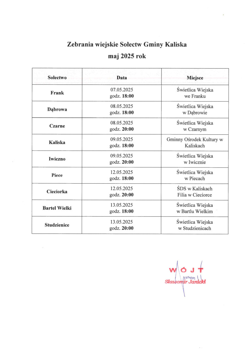 Zebrania wiejskie Sołectw Gminy Kaliska