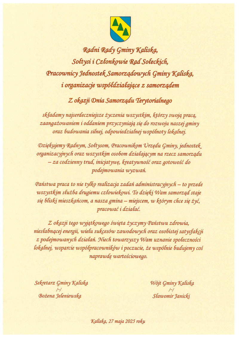 Życzenia z okazji Dnia Samorządu Terytorialnego
